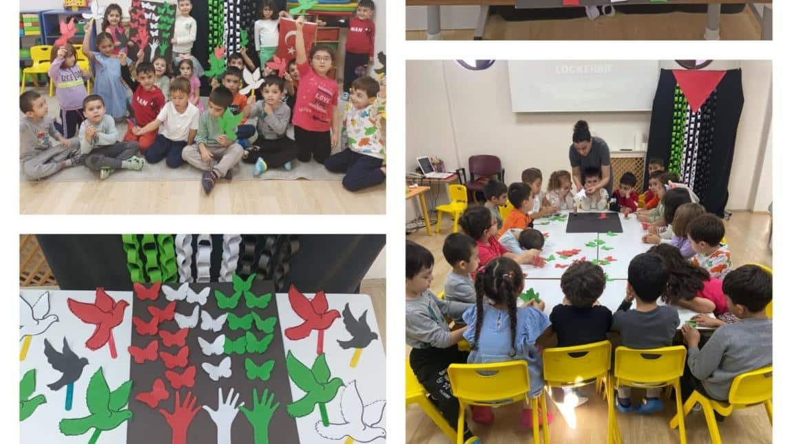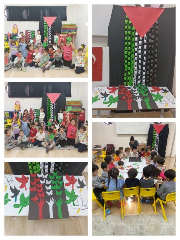 7 Ekim Salı günü, okulumuzda her sınıfta eş zamanlı olarak Filistin'e destek amacıyla farkındalık etkinlikleri gerçekleştirildi. Öğrenciler yaş seviyelerine uygun şekilde boyama, yırtma-yapıştırma, afiş ve pano çalışmalarıyla insan hakları ve barış temasına dikkat çekti.